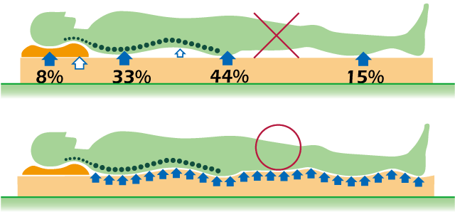 身体の一部が沈むとその部分に体圧がかかり、負担がかかります。