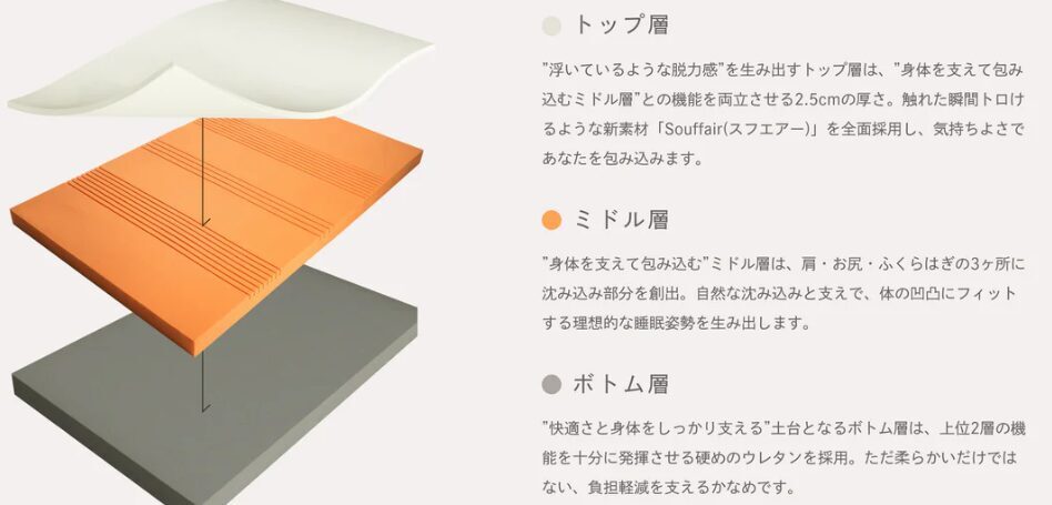 - ✅ 三層構造の高反発フォームで、体をしっかり支える
