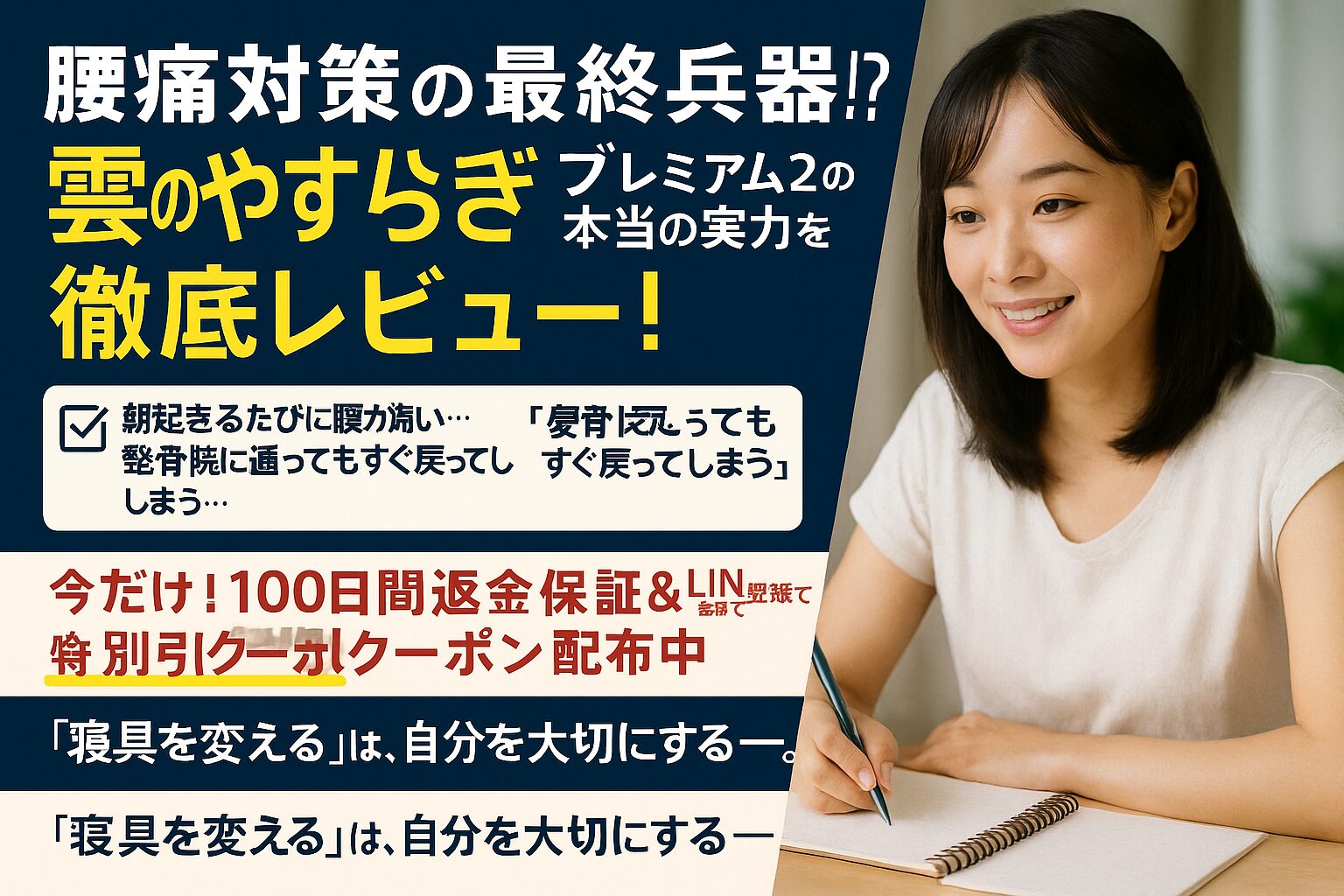 マットレス選びで失敗してきた人ほど、**雲のやすらぎプレミアム2の「やさしい寝心地」と「しっかり支える構造」**には感動するはず。